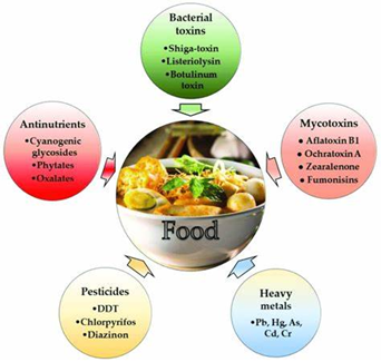 Our food can contain environmental toxins from pesticides, herbicides, additives, and preservatives. Processed foods also often have high levels of artificial ingredients and contaminants.  Selecting organic produce, decreasing the intake of processed foods, and paying attention to food labels can reduce exposure to these substances. Growing food personally or purchasing from local, organic farmers are methods to access cleaner food options.